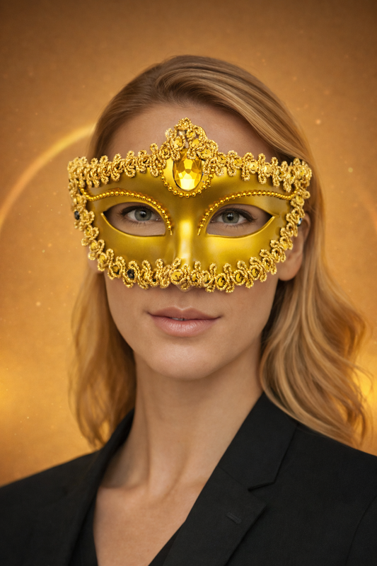 Colombina : Eine Halbgesichtsmaske, oft mit Gold, Federn und Edelsteinen verziert. Sie wirkt femininer und eleganter.