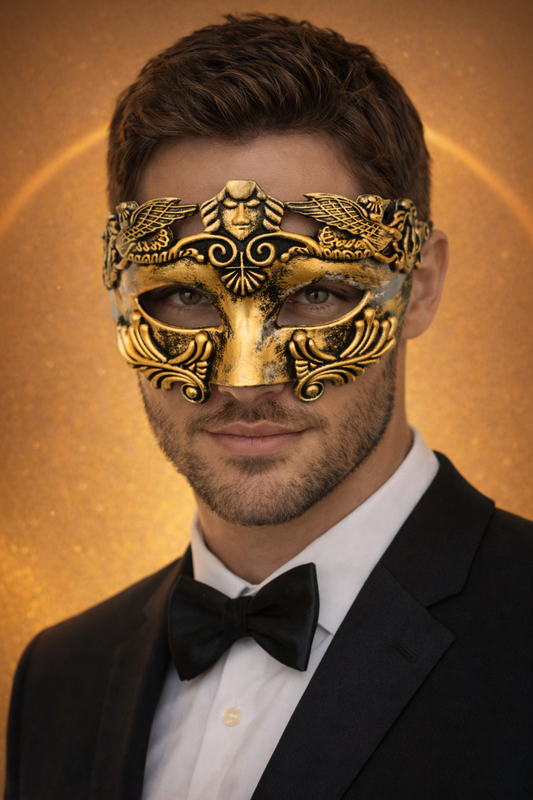 Entdecken Sie unsere Kollektion venezianischer Masken für Herren bei L'Univers Masqué. Stöbern Sie in unserem eleganten und vielfältigen Sortiment an venezianischen Masken, die perfekt zu Ihrem Abendoutfit, Maskenball oder anderen besonderen Anlässen passen. Unsere Masken werden sorgfältig nach Qualität und unverwechselbarem Design ausgewählt und bieten Ihnen Komfort und Stil den ganzen Abend lang. Finden Sie die perfekte Maske, die Ihre Persönlichkeit unterstreicht und Ihrem Look eine geheimnisvolle Note verleiht. Shoppen Sie jetzt und finden Sie Ihre ideale venezianische Maske bei L'Univers Masqué.